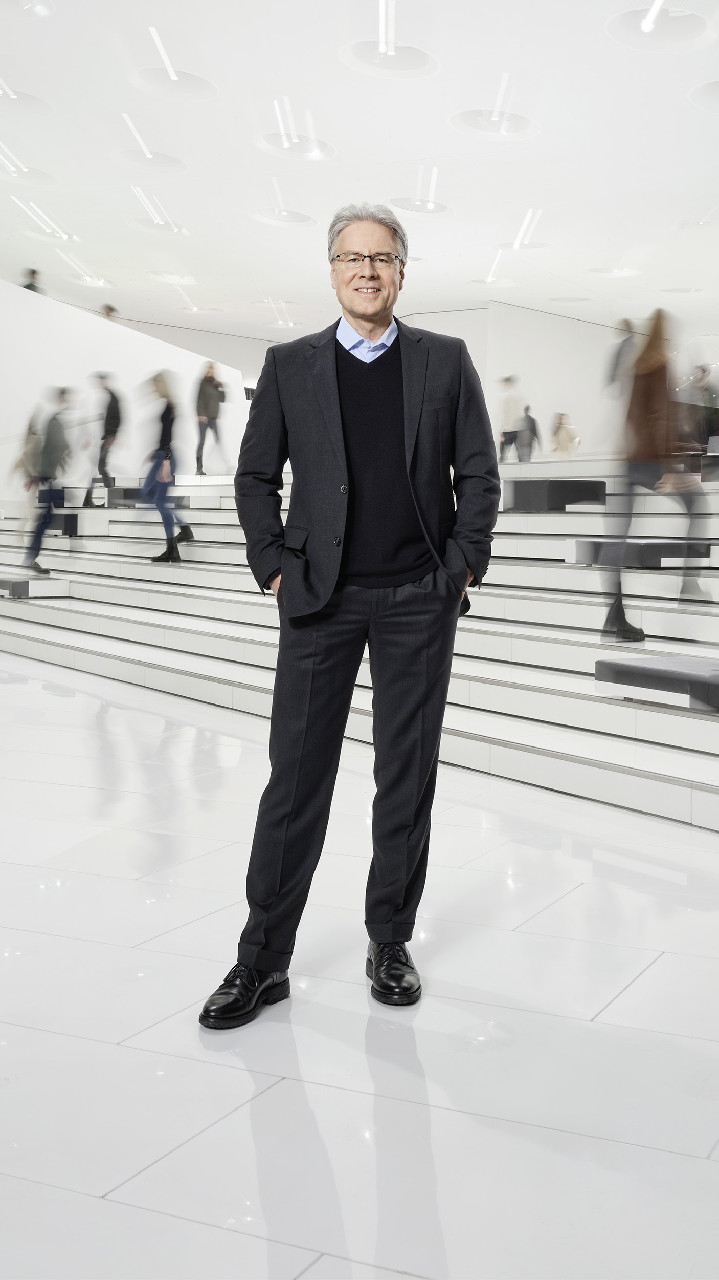 „Gerade in ­Barbara ­Frenkels Ressort sind kurzfristige Veränderungen aufgrund äußerer Einflüsse besonders herausfordernd“, sagt ­Vorstandskollege ­Andreas ­Haffner, verantwortlich für das Personal- und Sozialwesen – und damit für weltweit mehr als 40.000 Mitarbeitende. „Aber als grundlegende Aufgabe betrifft Transformation unser komplettes Unternehmen sowie die gesamte Industrie. Elektrifizierung, Automatisierung, Digitalisierung und künstliche Intelligenz dürfen keine Angst machen. Wir heißen diese Megatrends der Transformation willkommen und wollen sie für uns als Team nutzen.“