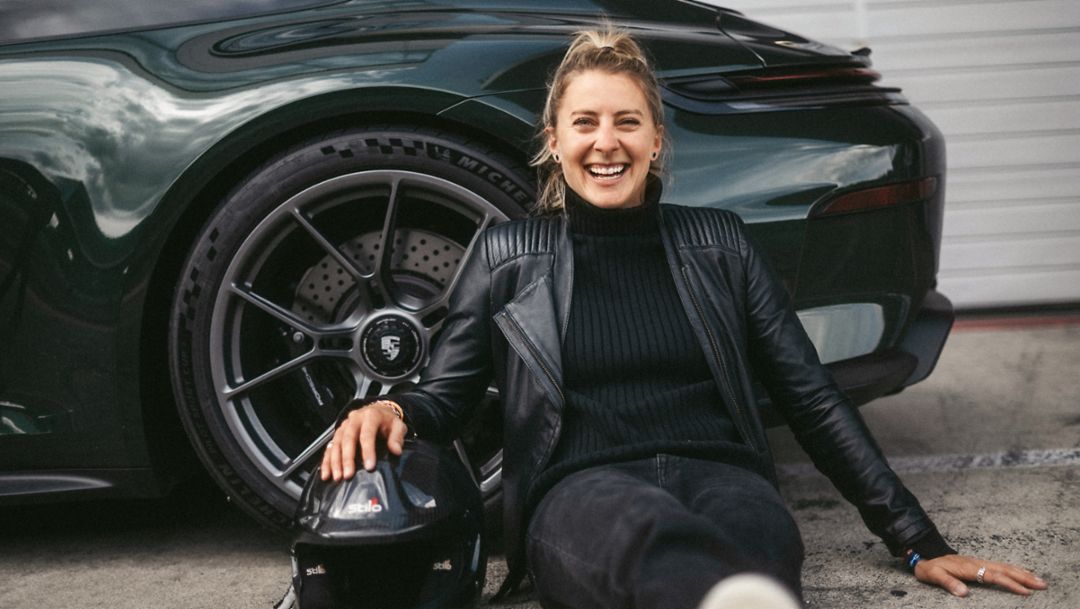 Curbs statt Klippen, Motorensound statt Windrauschen: Zum ersten Mal tauscht Jenna Gygi ihren Wingsuit gegen Rennhelm und Porsche – und erlebt eine neue Art von Höhenflug.