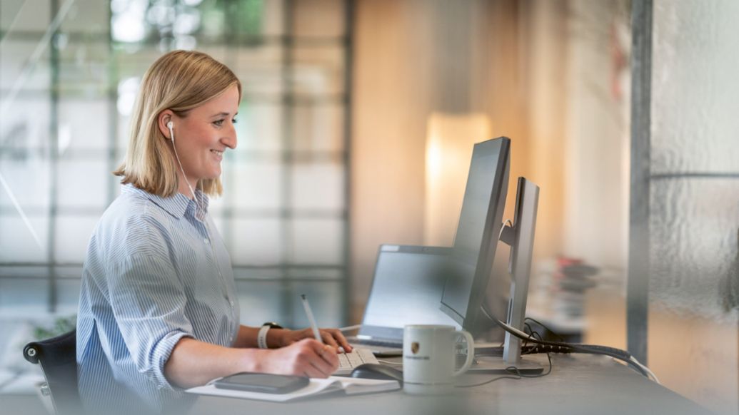 Porsche takes account of its employees’ individual needs and promotes flexible working options with regard to workplace and working hours, giving them a high degree of flexibility regarding their personal circumstances. This flexibility was further enhanced in 2021 with the amended works agreement regarding mobile working, which allows up to 12 full days of mobile working per calendar month. Mobile working by the hour also remains an option. An exceptional rule was applied in the year under review due to the coronavirus crisis, with the permitted time for working hours being extended and with interns and trainees being incorporated too. Porsche employees are free to decide where and, to a certain extent, when they perform their work if their role can be carried out remotely.
