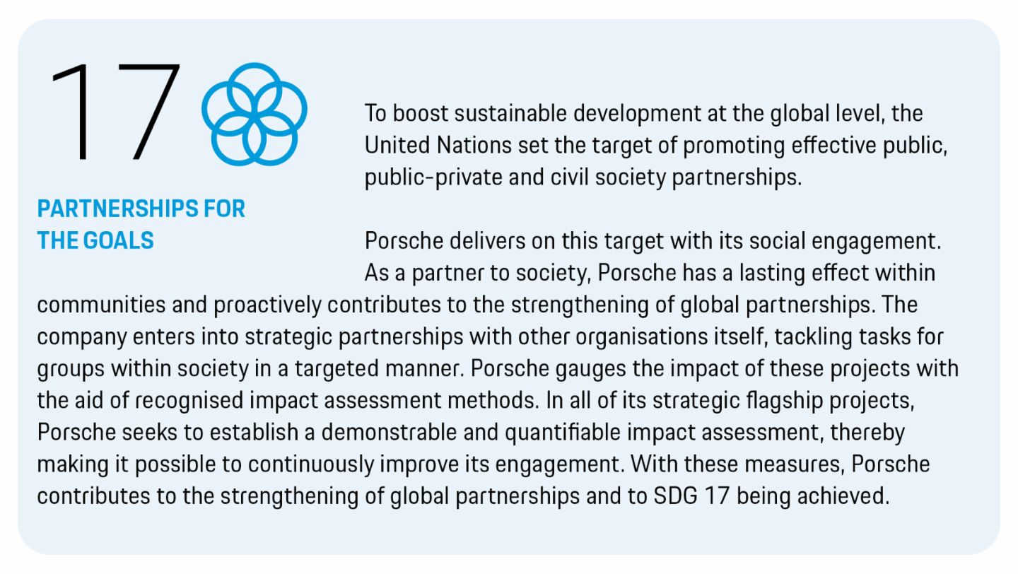 With this orientation, Porsche wishes to serve as a role model in the social context. The company therefore promotes diversity and inclusion outside of the factory gates too. Its activities here include social support projects and finding voluntary placements for employees. Voluntary engagement serves society and broadens the helpers’ horizons.